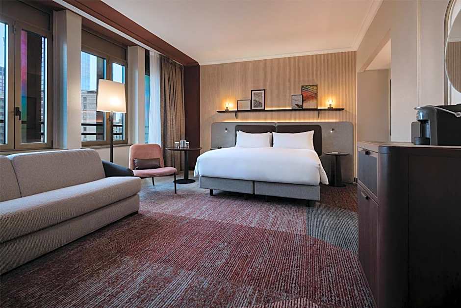 The junior suite includes access to the Executive Lounge where you can enjoy complimentary breakfast and refreshments. It features an extra-large bed, a work desk with ergonomic chair, a sofa and fluffy bathrobe.